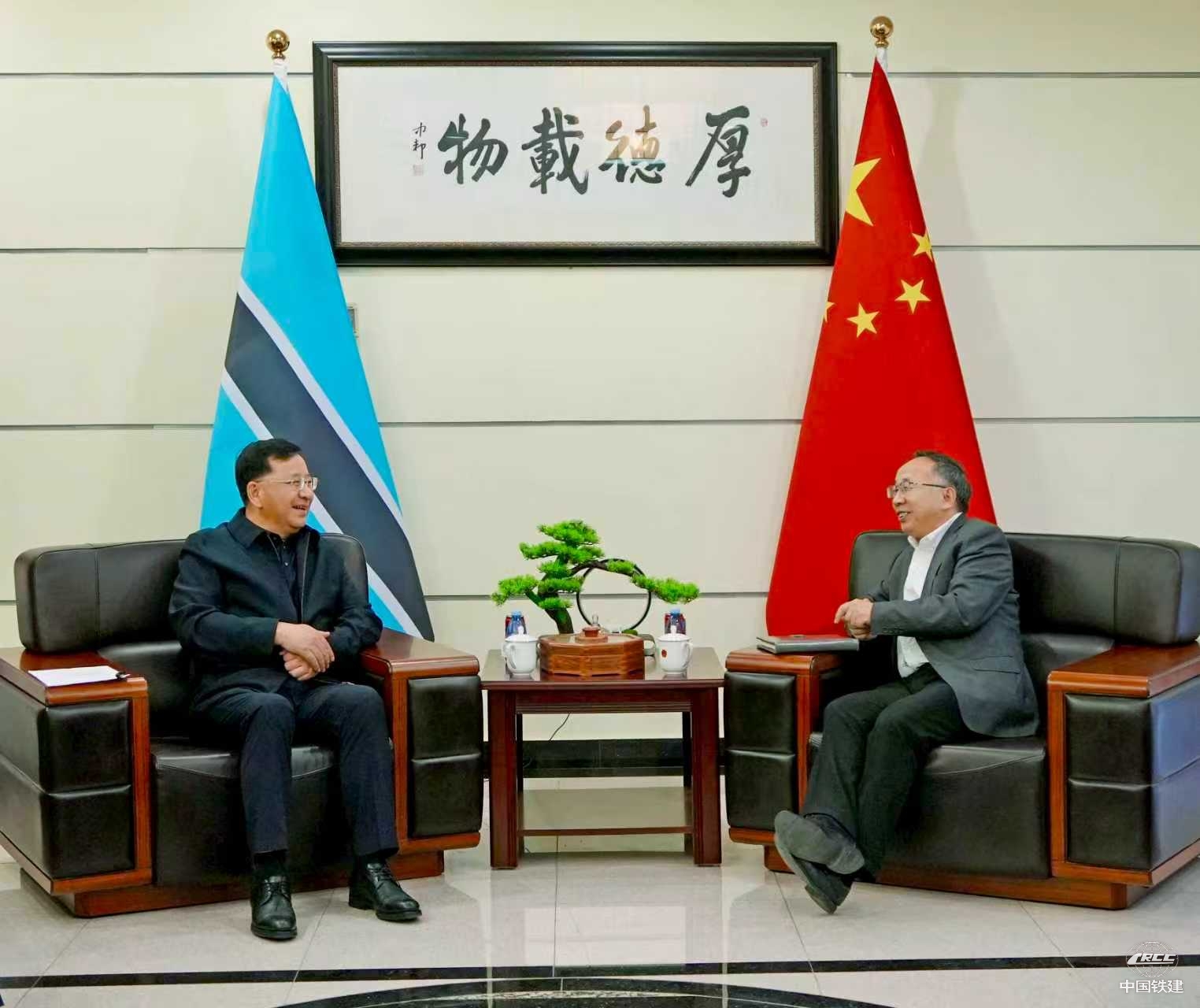 中國駐博茨瓦納大使館參贊蘭玉強(qiáng);中國鐵建副總裁趙佃龍,有關(guān)部門、單位負(fù)責(zé)人參加會(huì)談。