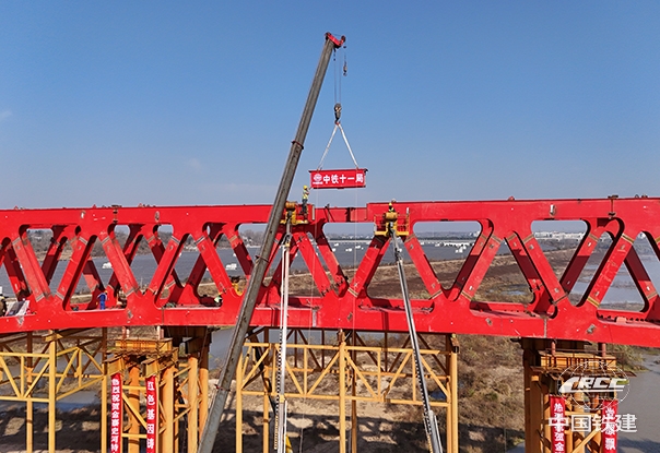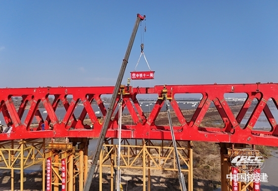 最后一節(jié)鋼桁梁即將合龍(曾繁波 攝)