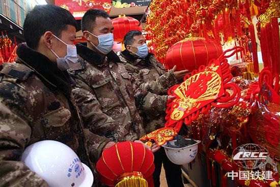 悉心選購(gòu)“中國(guó)結(jié)”就地過年“扮靚家” 春節(jié)前夕,中鐵二十局市政公司蘭州新區(qū)房建項(xiàng)目施工一線員工在選購(gòu)“中國(guó)結(jié)”等年貨。春節(jié)臨近,該公司所屬工程項(xiàng)目部指定專人采購(gòu)年貨,為就地過年的勞務(wù)工等人員“扮靚家”,喜迎新春佳節(jié)到來(lái)。 許崗攝( 詳細(xì) )