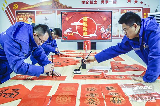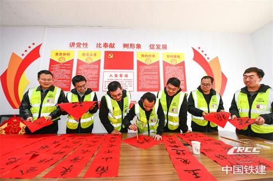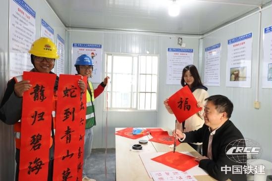 幸福點(diǎn)亮“中國(guó)紅” 歡喜迎春年味濃! 春節(jié)來(lái)臨之際,在地處大巴山區(qū)的中鐵十七局西渝高鐵安康至重慶段項(xiàng)目部,建設(shè)者正在寫春聯(lián)、貼福字喜迎新春佳節(jié)。大紅的字帖和筆鋒散發(fā)著濃濃的墨香,喜慶的福字映襯著大家的笑容,帶來(lái)濃濃的節(jié)日氛圍。西渝高鐵是我...( 詳細(xì) )