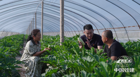 范家銘與村民交流西葫蘆種植經驗(中鐵十四局一公司 供圖)