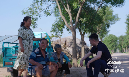 范家銘與村里老人聊天(中鐵十四局一公司 供圖)