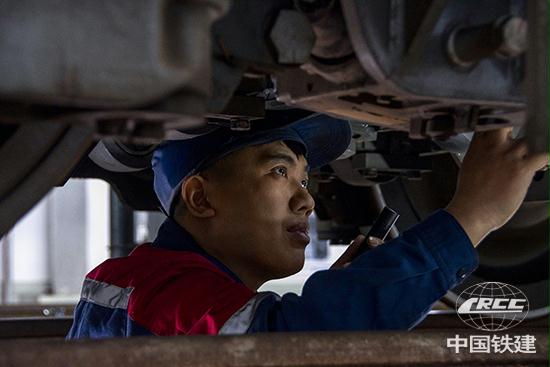中國(guó)鐵建電氣化局建設(shè)者對(duì)軌道車(chē)進(jìn)行調(diào)試(王 輝 攝)