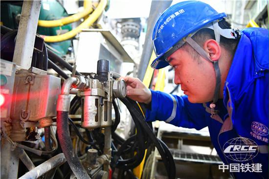 盾構(gòu)掘進(jìn)主管于俊承巡檢設(shè)備運行狀況(劉福昌 攝)
