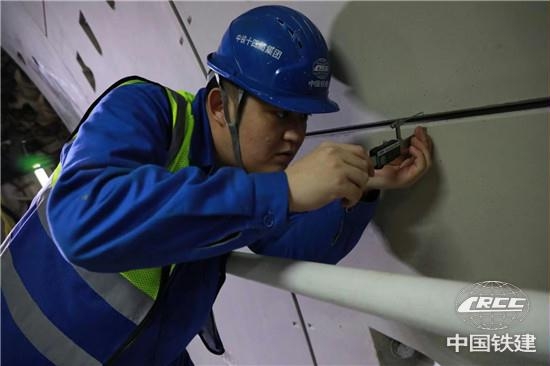盾構(gòu)掘進(jìn)主管于俊承在測量管片平整度(吳濤 攝)