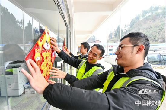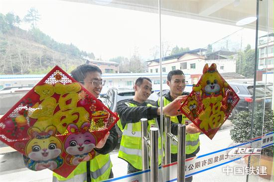 兔年將至,地處大巴山區(qū)的中鐵十七局西渝高鐵安康至重慶段項(xiàng)目部,建設(shè)者正在寫(xiě)春聯(lián)、貼福字喜迎新春佳節(jié)。大紅的字帖和筆鋒散發(fā)著濃濃的墨香,喜慶的福字映襯著大家的笑容,帶來(lái)濃濃的節(jié)日氛圍。西渝高鐵是我國(guó)“八縱八橫”高鐵網(wǎng)北京至昆明的京昆通道和包頭、銀川至??诘陌ㄣy)海通道的重要組成部分,對(duì)鞏固拓展脫貧攻堅(jiān)成果、全面推進(jìn)鄉(xiāng)村振興、助力城鄉(xiāng)融合和區(qū)域協(xié)調(diào)發(fā)展、形成西部大開(kāi)發(fā)新格局,具有十分重要的意義。為全力建設(shè)臨建工程,爭(zhēng)取年后迅速打開(kāi)施工作業(yè)面,項(xiàng)目全體30名職工今年在項(xiàng)目過(guò)年。