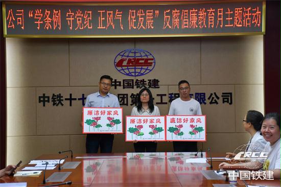 黨紀(jì)學(xué)習(xí)教育開展以來,中鐵十七局一公司各級(jí)黨組織齊“廉”動(dòng),一體推進(jìn)黨紀(jì)學(xué)習(xí)教育與反腐倡廉宣傳教育月活動(dòng)同步開展,進(jìn)一步深化黨員對(duì)《中國共產(chǎn)黨紀(jì)律處分條例》的認(rèn)識(shí),提升黨性修養(yǎng),嚴(yán)明黨的紀(jì)律,弘揚(yáng)正風(fēng)正氣,推動(dòng)公司穩(wěn)定健康高質(zhì)量發(fā)展。