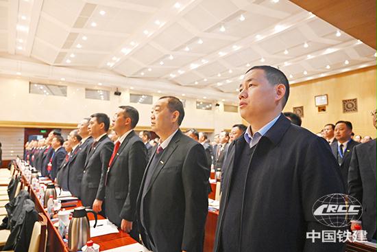 會議現(xiàn)場與會人員合唱國歌(肖永順 攝)